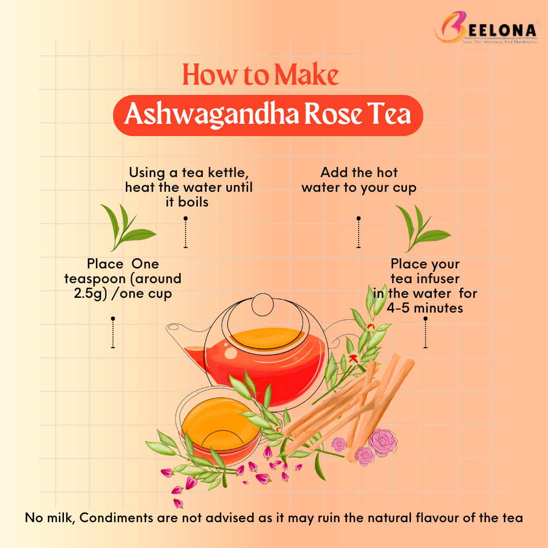 Embrace the holistic wellness and calming benefits of Beelona Ashwagandha Rose Green Tea, and elevate your tea-drinking experience with this unique, balancing blend.